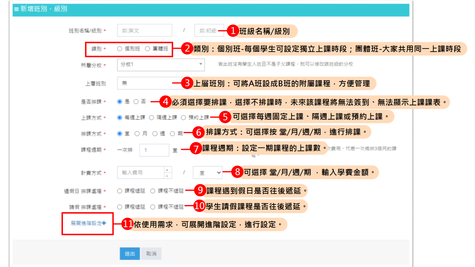 與google行事曆相同的格式,熟悉的介面使您夠快上手。課表可以依照每日、每周、每月的課表迅速呈現,且支援滑鼠拖拉調課,如果有學生需要請假、調課、代課、停課,輕鬆一拉即可操作完畢。
